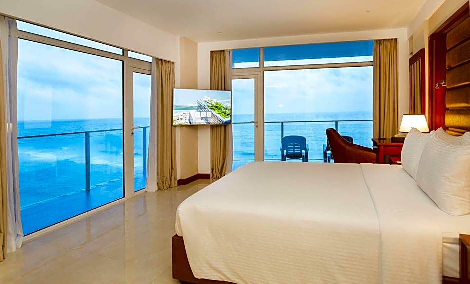 This king room has a balcony with sea view, attached bathroom. Guests have privileged access to the infinity pool & rooftop garden. Complimentary Mini-bar with soft drinks. Complimentary Evening Tea.